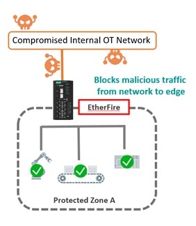 Heldigvis har vi fra Moxa nu to produkter, som løser alle vores problemer, EtherCatch og EtherFire. De er selvfølgeligt ikke gratis, så det er vigtigt at man sætter sig ned og gennemgår sit OT netværk. Undersøg hvad der er vigtigt at beskytte og hvilke computere eller PLC’er der kan inficeres og starte et angreb. Når man har styr på dette, kan man beslutte hvilke enheder, man skal installere, hvor og hvor mange.