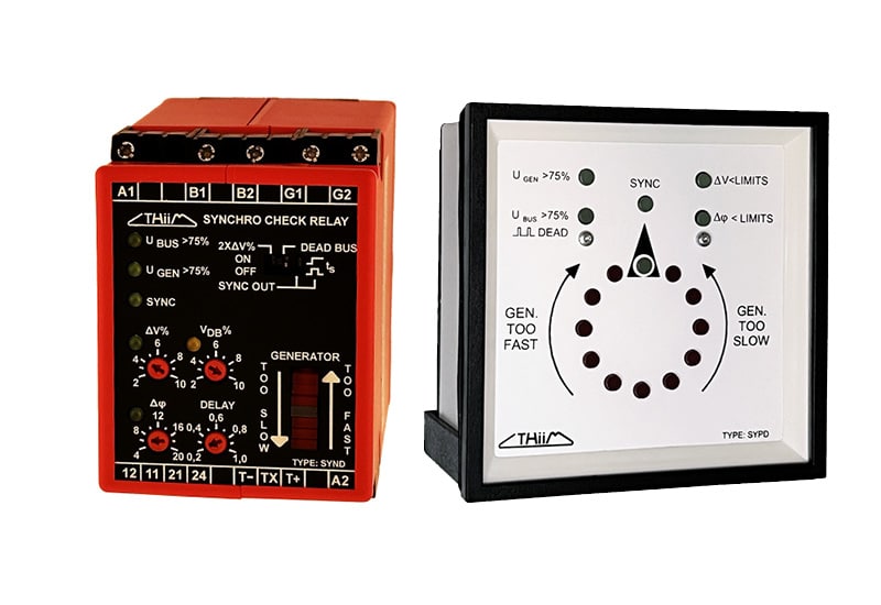 - Registrerer og sammenligner spænding og fasevinkel mellem to AC-forsyningssystemer