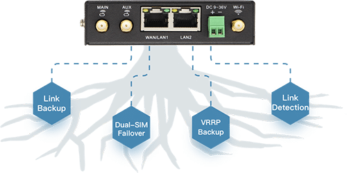 Har du kun mulighed for mobil forbindelse, men stadig vil være sikker på redundant forbindelse, understøtter IR302 to SIM kort. Vælg SIM kort fra to forskellige udbydere, så er du sikker på, at hvis det ene ikke kan få forbindelse, så kan det andet. Specielt anvendeligt ved enheder som f.eks. er installeret i et køretøj eller en færge.