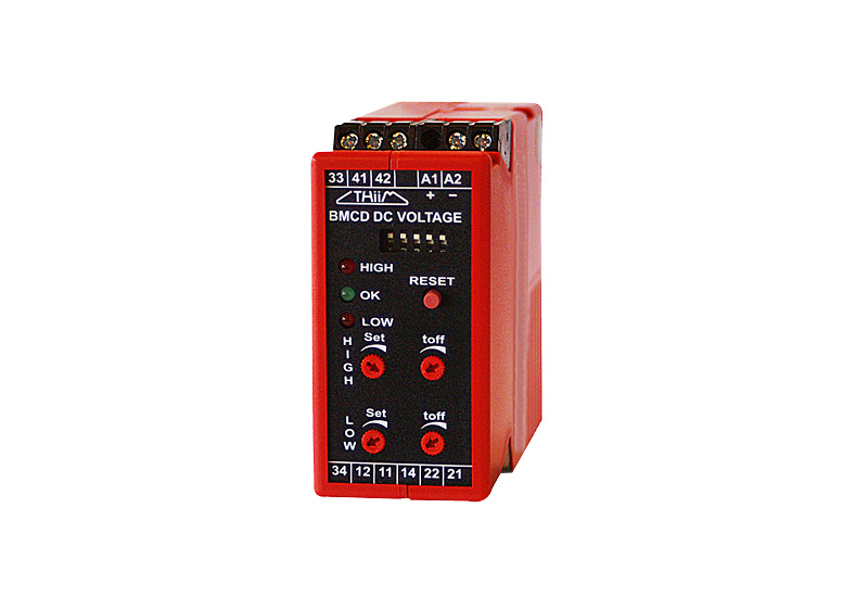 Kombineret over- og underspændingsrelæ. Ved hjælp af en indbygget switchmode-forsyning, designet til at overvåge niveauer fra 14-340 VDC. Den individuelt justerbare hysterese for over- og underspænding betyder, at relæet kan bruges både til ind- og udkobling af udstyr med definerede spændingsværdier. BMWB kan bruges som et vinduesdiskriminator med veldefinerede øvre og nedre grænseværdier.